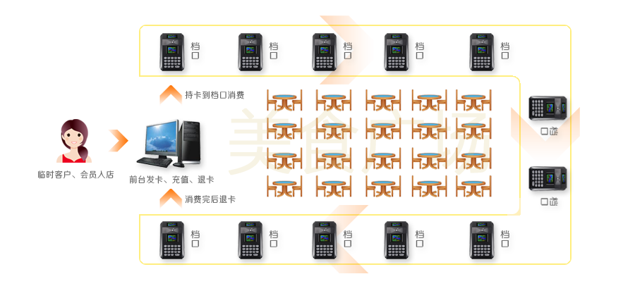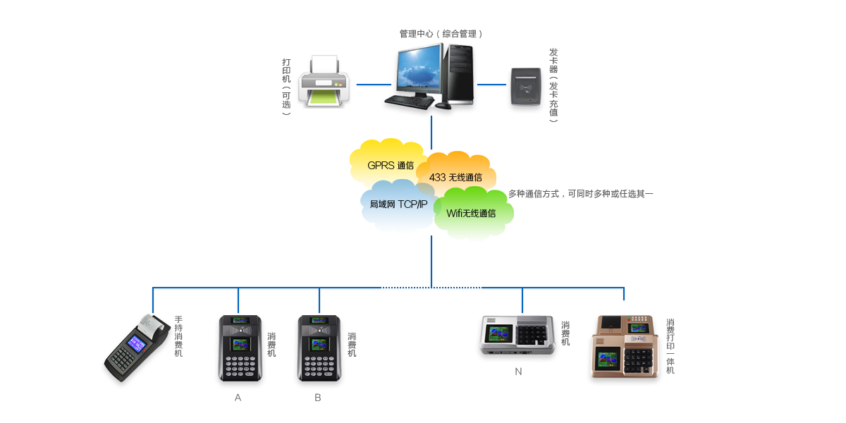 档口消费管理这一块做为整个交易过程的主要部份,由刷卡机与小票打印机组成。